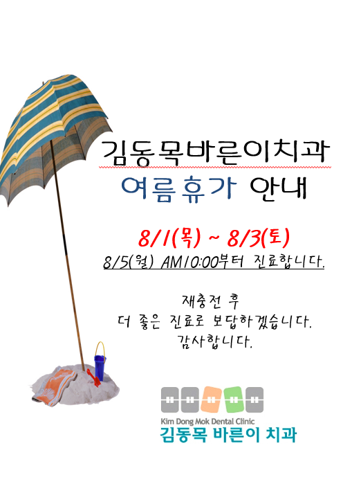 8월 여름휴가 안내입니다. 페이지 정보 작성자 김동목바른이치과 작성일24-07-27 09:47 조회1,821회 댓글0건 관련링크 이전글 다음글 목록 본문 8월 여름휴가 안내입니다.참고 하시고 내원해주시길 바랍니다 감사합니다. 댓글목록 등록된 댓글이 없습니다. 이전글 다음글 목록